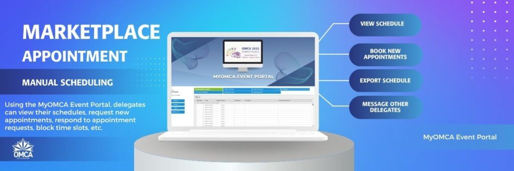 The Appointment Scheduler in the MyOMCA Event Portal is open from October 28th to November 5th. This portal is the one-stop-shop for:
